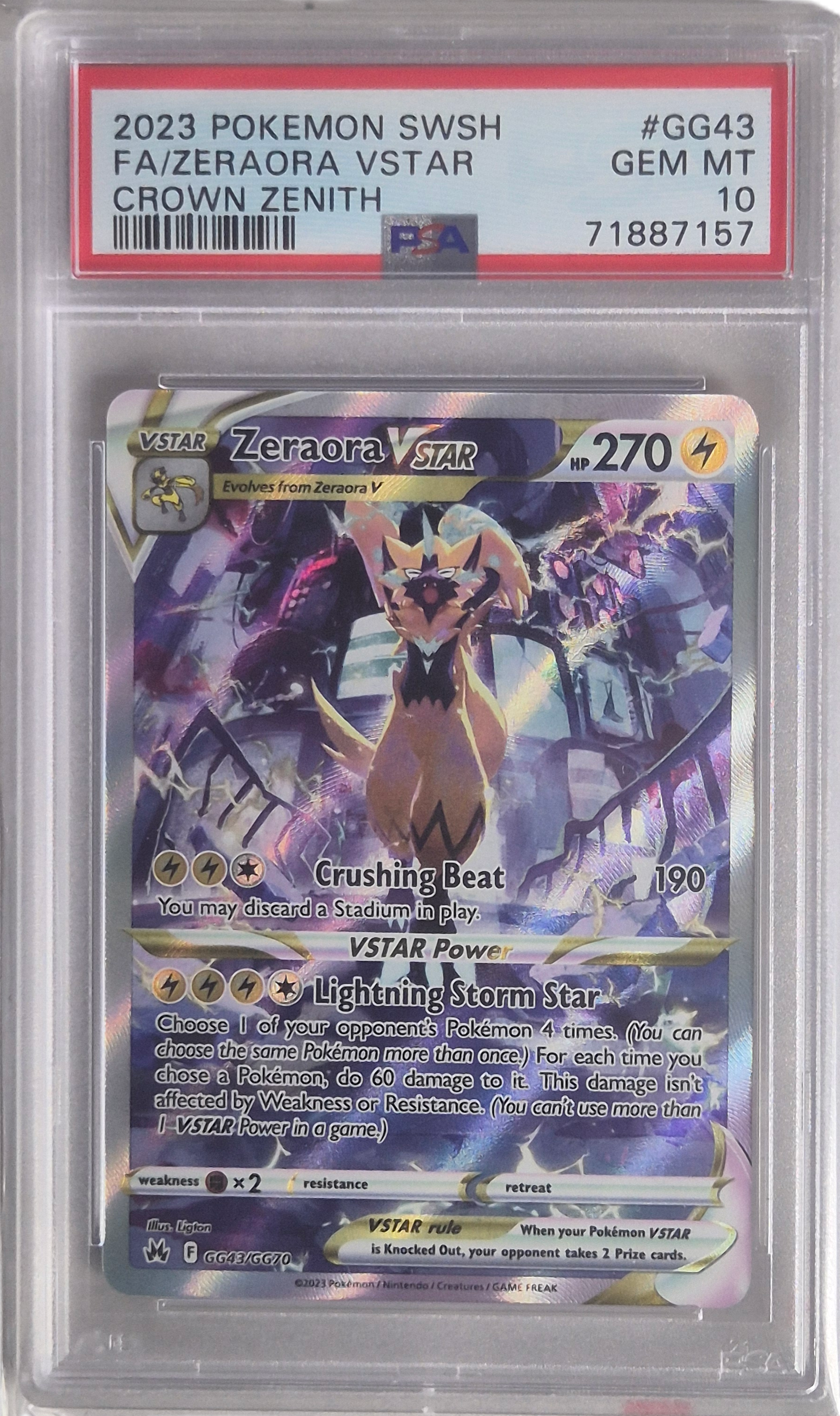 - Zeraora - Crown Zenith GG43/GG70 GEM MT - PSA 10