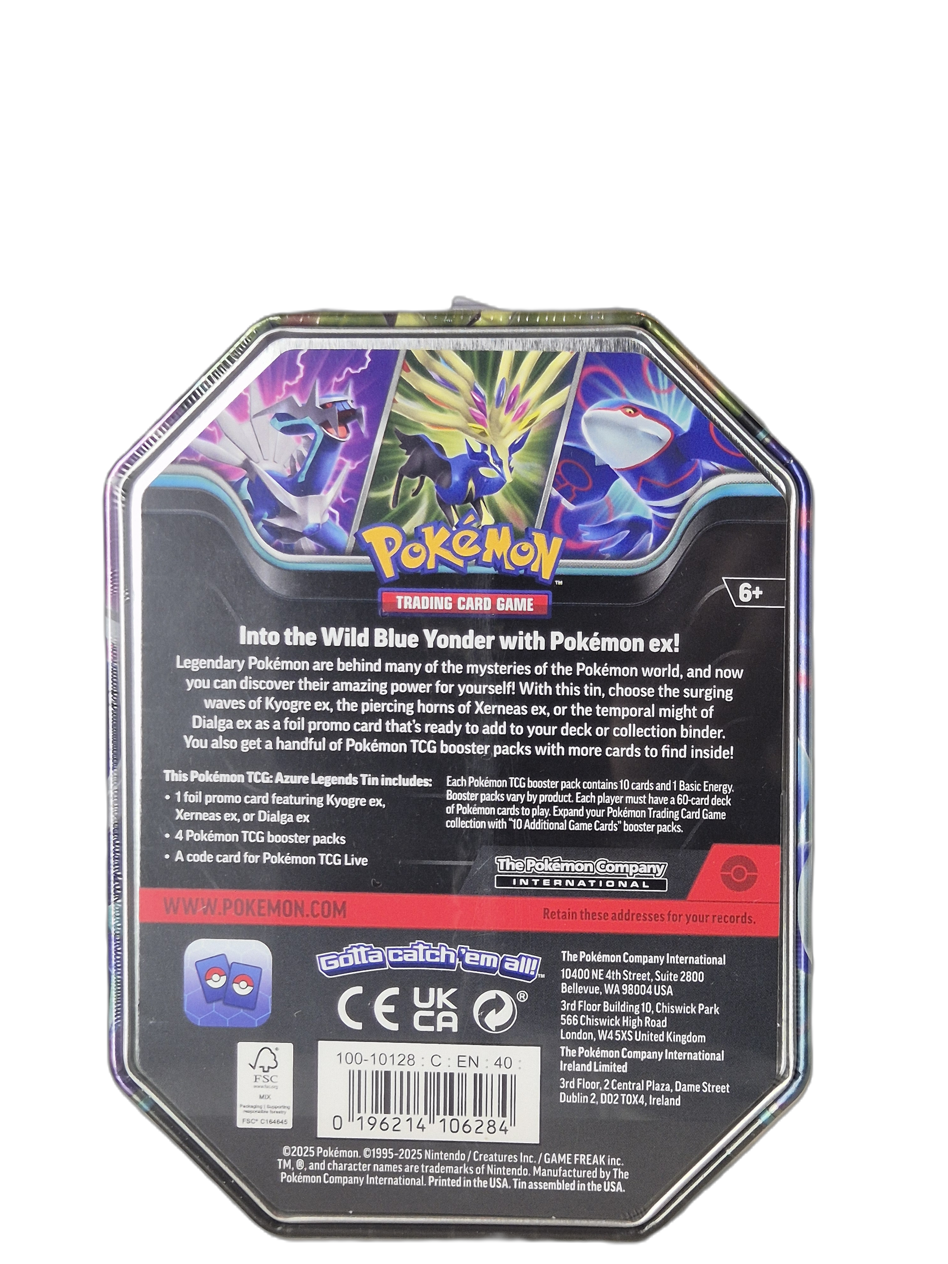 Azure Legends Tin med Dialga EX, en Legendary Pokémon från XY-eran. En populär samlartin som även fanns med Kyogre EX och Xerneas EX, vilket gör hela serien eftertraktad bland samlare.