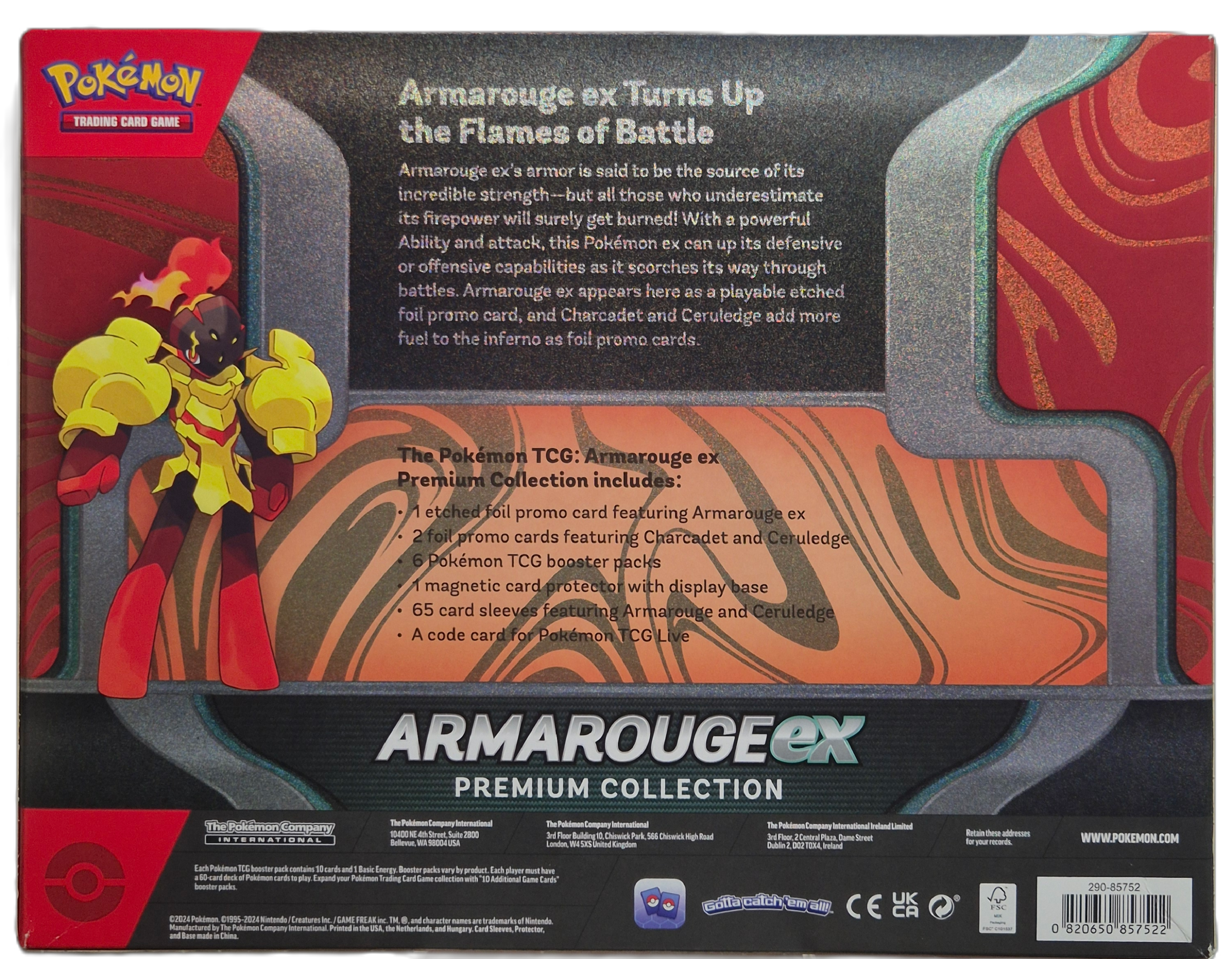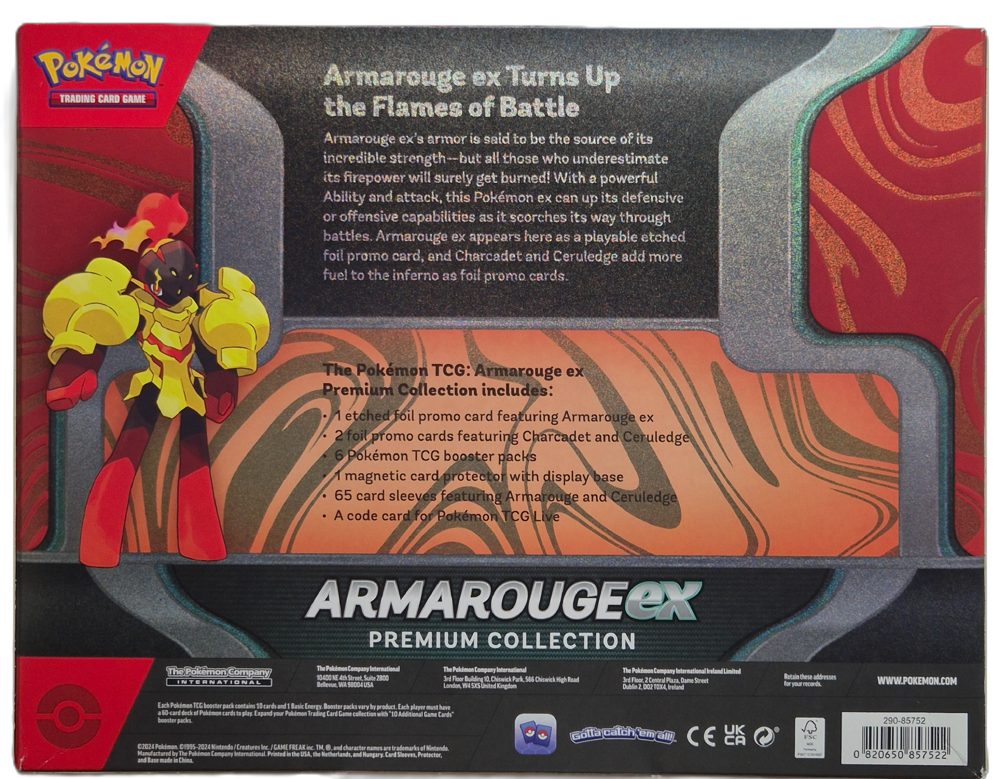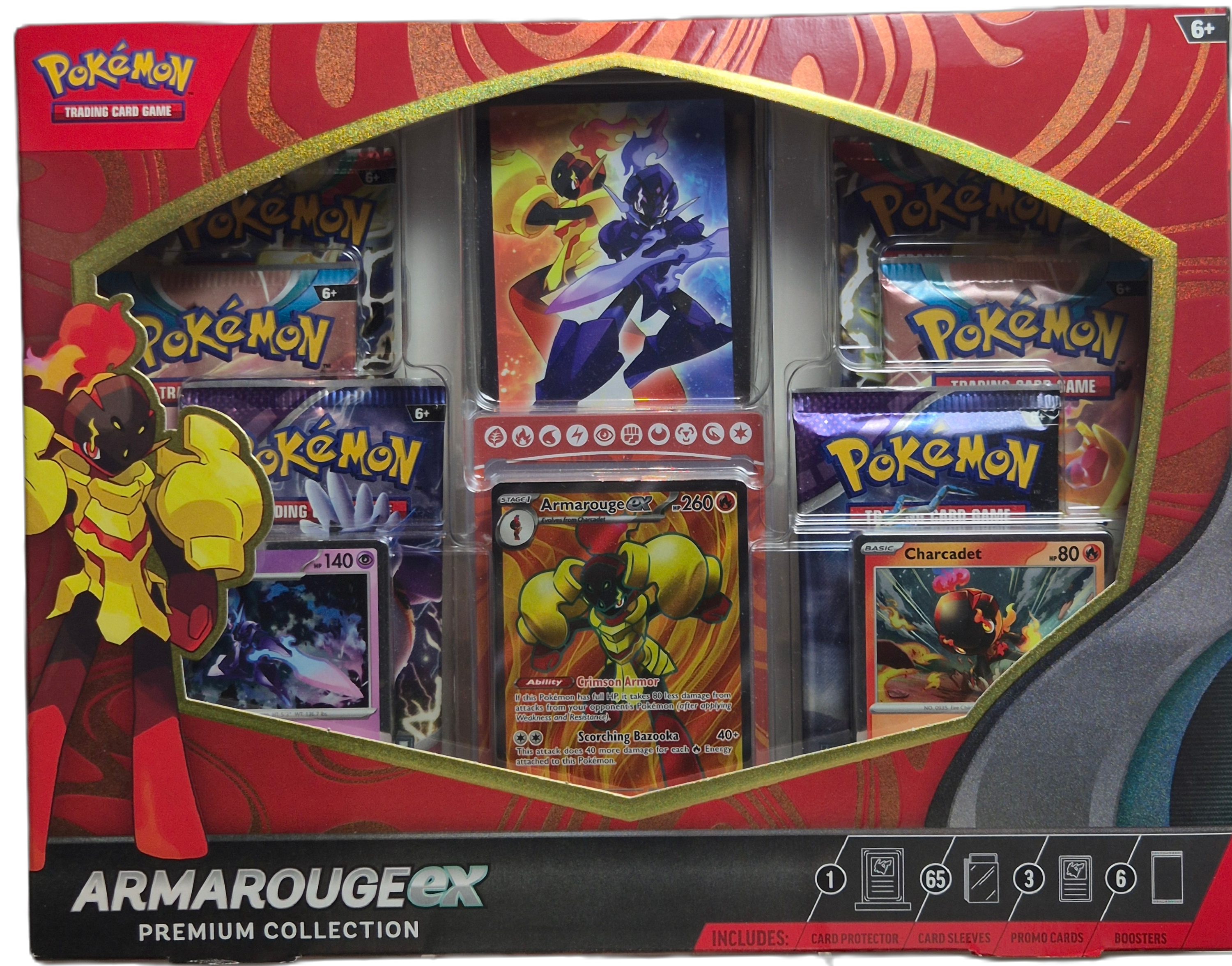 Armarouge ex Premium Collection är en modern premiumbox som fokuserar på den kraftfulla Fire-typen Armarouge ex. Boxen innehåller exklusiva promokort, samlartillbehör och flera booster packs – perfekt för både spelare och samlare.