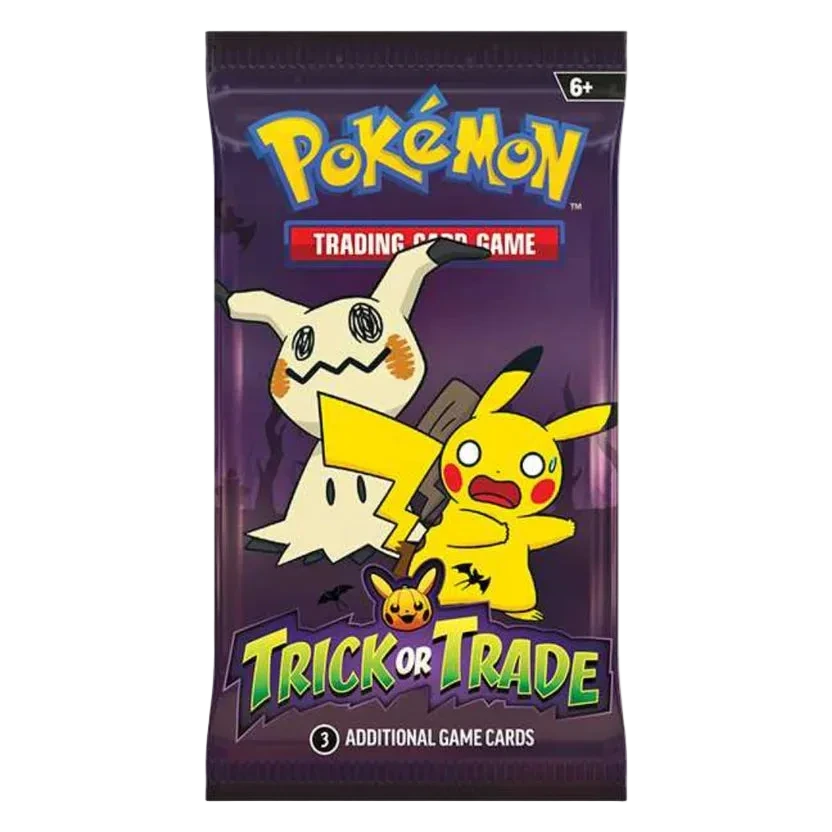 Ett festligt booster pack från Trick or Trade 2023 med Halloween-tema. Varje pack innehåller 3 Pokémonkort och ger chansen att dra roliga, stämningsfulla kort perfekta för utdelning, samling eller temabyggda lekar. Perfekt för både samlare och Pokémon-fans i alla åldrar.