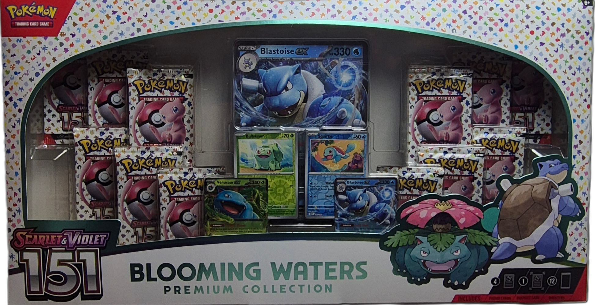 3× promo cards (Blastoise ex, Venusaur ex, Bulbasaur)